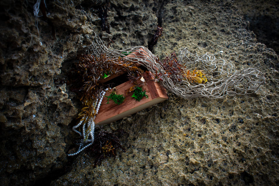 Lurking in the Waters is a series of images that goes into what a person may think about when looking out at sea. Many people all over the world have a fear of not knowing what they are swimming with in the water. Many of these mythical creatures have had different depictions of them through different cultures, and as times change. Since only 5% of our waters have been discovered, we are always finding new objects, and we are often quick to assume that these objects found are linked to a certain mythical creature until more research and testing are done. I decided to use objects that can link to any folklore, but more specifically, the different depictions of sirens.